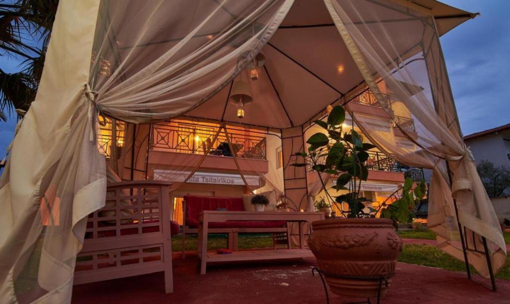 Вилата Tsitsirikos е еден од најпознатите и најбараните објекти во Торони, позната по одличниот сооднос на квалитет и цена. Сместена е на само 70 метри од плажата и шеталиштето, во прекрасен двор полн со зеленило и цвеќиња. Мирна атмосфера, исклучителна чистота и љубезни домаќини се причината зошто оваа вила е омилен избор за семеен одмор во Торони.