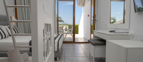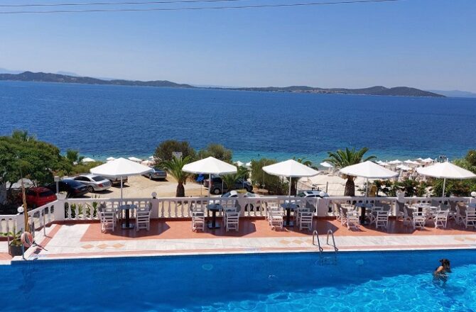 Хотел Акти 4* на 30 метри од песочна плажа. Има подземен премин до прекрасната плажа со ситен песок и постепено задлабочување на водата. Секоја соба има еден дупол кревет и два единечни кревети на спрат, и една соба има еден дупол кревет и два единечни кревети, wi-fi, тв, клима уред, мини фрижидер, телефон купатило со вц, фен, крпи големи за на плажа и туширање и мали за лице. Има 2 ресторани за доручек со поглед на море и ресторан за вечера со поглед на море. Приватна плажа со лежалки и чадори за гостите од хотелот кои се користат со нарачка на пијалок. Бар покрај базен, бар на плажа, безжичен интернет на плажа. Базен отворен со посебен дел за деца. Простории за друштвени игри, пинг понг, цртање, лифт. Покриен паркинг за возила, мини маркет, сеф, 24 часа рецепција и перална.