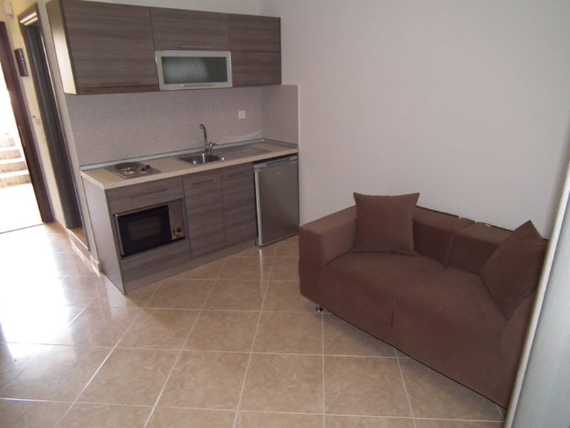 1/4 апартман – во една просторија чајна кујна и два единечни кревети или кревет на расклопување за 2 лица, во другата просторија еден брачен кревет