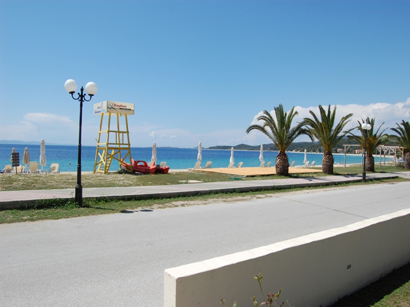 Се наоѓа на сама плажа во склоп на хотелот Toroni Blue Sea. Студијата и апартманите за 2 – 4 лица во понудата се на приземје, прв и втор кат. Едните се со страничен поглед на море, а другите со поповолна цена се со постар намештај и без поглед на море. Сите имаат TV и клима вклучена во цената . Гостите можат да го користат базенот, детскиот базен и паркинг од хотелот. Можна е доплата на полупансион во хотелот.