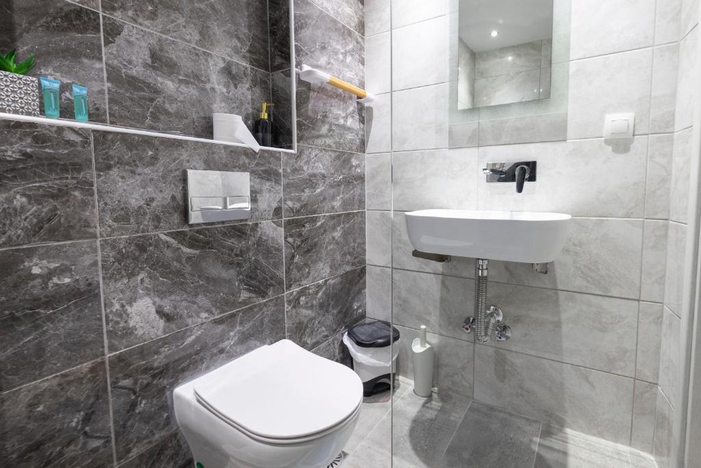 Студио бр. 5 – прв кат. Располага со комплетно опремена кујна со голем фрижидер и мало решо, комплетно реновиран тоалет, сопствена тераса опремена со маса и столови и поглед кон парк, клима, ТВ, Wi-Fi. Има брачен кревет.