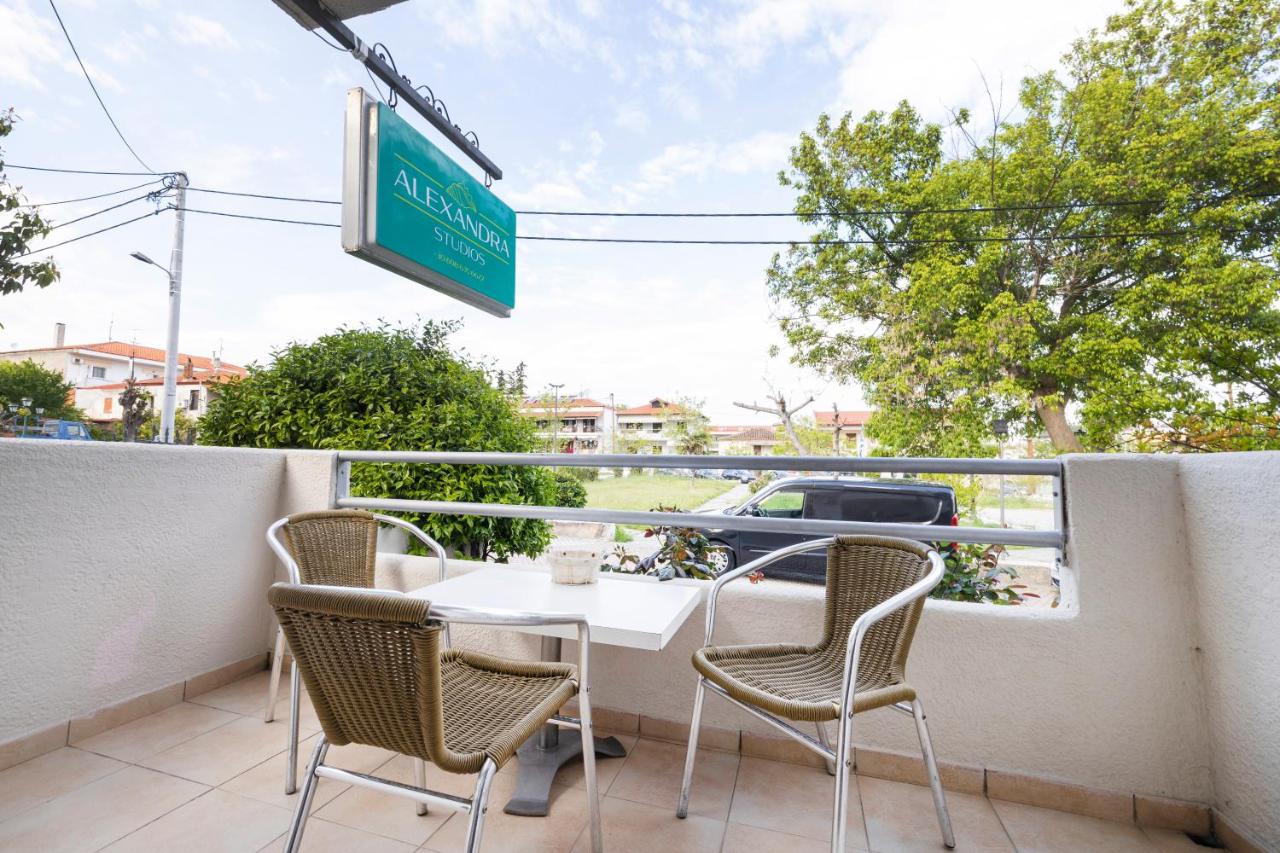 Куќа „Alexandra” се наоѓа на одлична локација и има многу лесен пристап до прекрасната плажа која е на само 5-7 минути пешачење. Располагаме со 2 двокреветни студија, 3 трокреветни студија и едно четирикреветно студио. Сите студија се реновирани, нови, за најпрoбирливите патници и располагаат со сопствени балкони, комарници, комплетно опремена кујна, ЛЦД ТВ, сопствени реновирани тоалети со пешкири. Интернетот, климата и сет пешкири се вклучени во цената. Паркинг простор обезбеден пред вилата. Вилата е високо квалитетна и со 9.6 оценка на Booking.