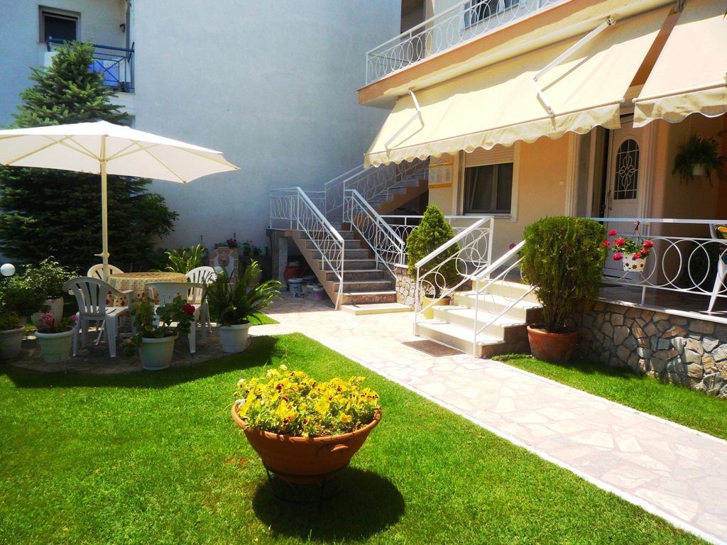 Вила “VANGELIS” се наоѓа на 150m од плажа, веднаш до хотел "Eleni" под главиот пат и пругата во центар на Лептокарија. Располага со двокреветни и трокреветни студија, апартман со една спална за 5 лица и дуплекс апартман со две одделни спални соби за 5 лица. Во двокреветните студија има 2 единечни легла и се наоѓаат на високо приземје и први кат, во трокреветните има еден брачен и еден единечен кревет на први кат, во апартманот со една спална има еден брачен во спалната, и еден брачен и еден единечен во кујната. Овој апартман се наоѓа на високо приземје, додека во дуплекс апартманот со две одделни спални соби има три единечни во едната спална и две единечни во другата спална и дневна со кујна. Сите студија/апартмани се комплетно опремени со: кујна (со комплетен прибор за онолку лица према број на легла, фрижидер...), тоалет, огледало, туш, балкон (масичка со столчиња), клима, ТV, гардеробер. На располагање на гостите е бесплатен интернет и прекрасно уредени двор со парк кој ги воодушевува сите кои случајно или намерно минуваат покрај вилата.