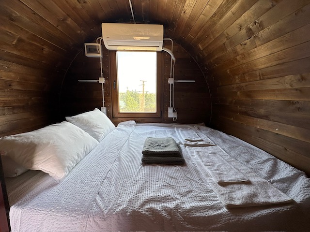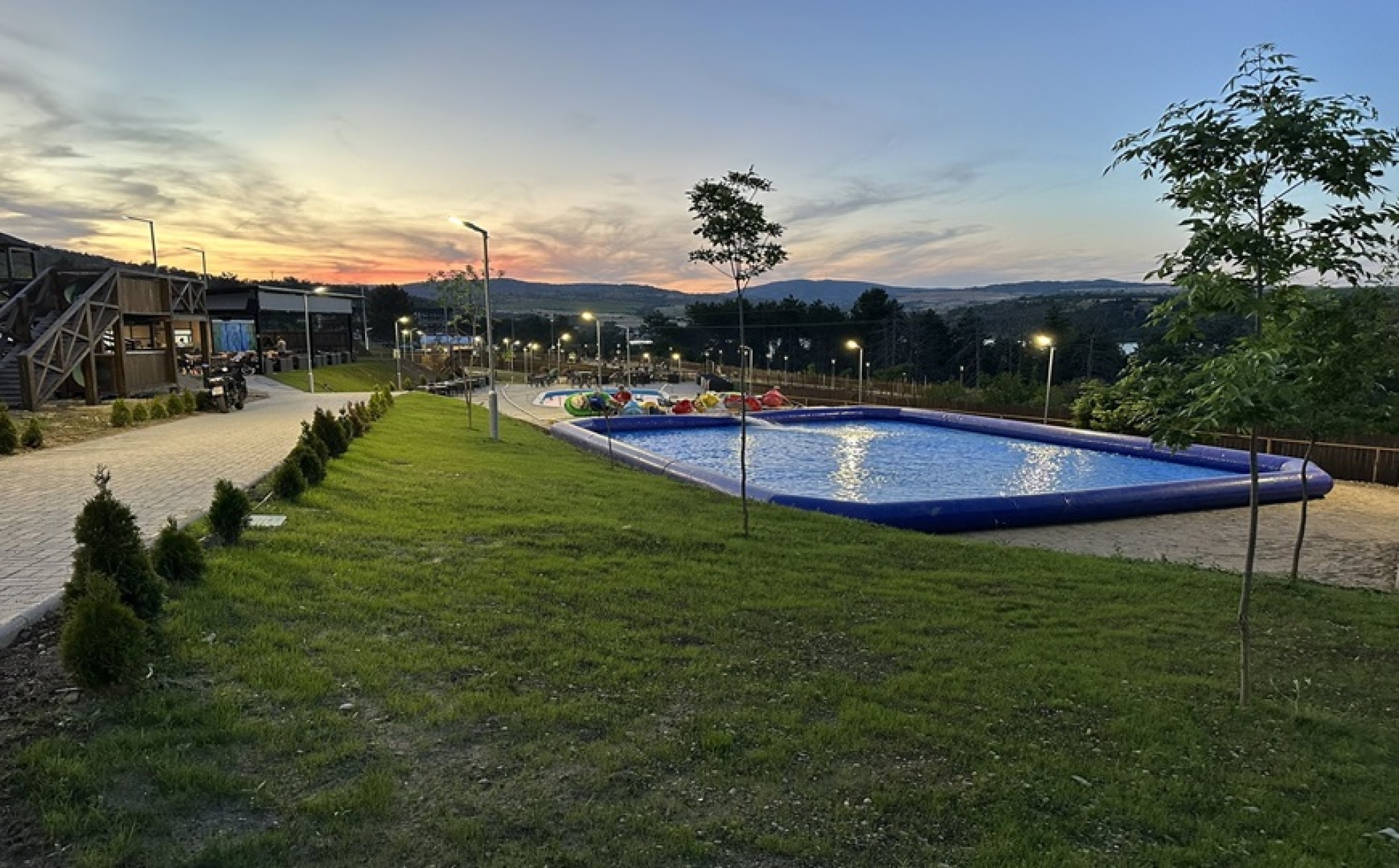 Еко кампот располага со летен бар-ресторан,(самопослужување), и бистро каде може да ги вкусите најубавите велешки специјалитети. Располага со 7 сместувачки единици (во вид на буре) за ноќевање со капацитет од 4 лица, отворен базен,содржини за деца, паркинг, тоалет, WI-FI. Сите сместувачки единици имаат просторија со брачен кревет, и два единечни кревети кои се наоѓаат во друга просторија. Опремени со клима уред, постелнини и пешкири.