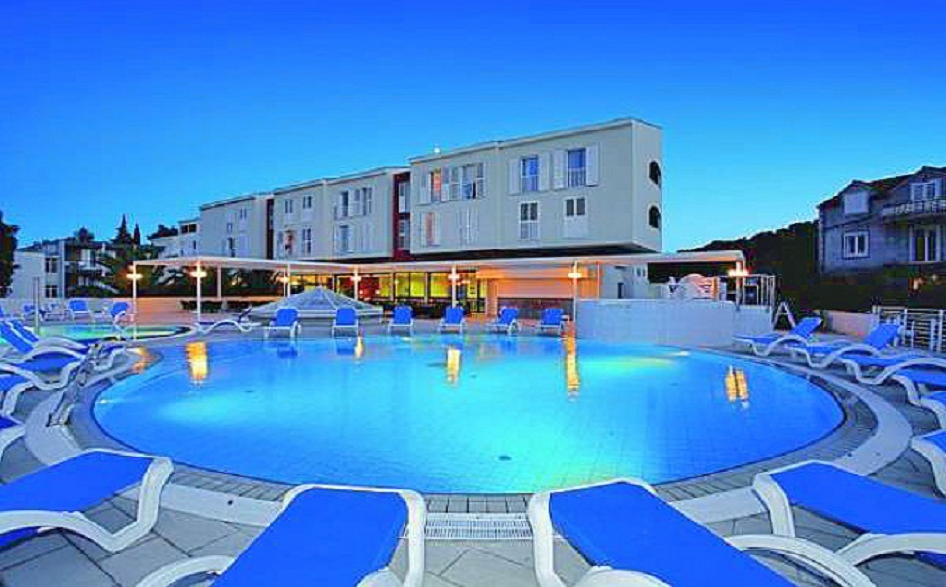 Содржини: Надворешен базен, внатрешен базен со слатка вода, детски базен, buffet ресторан, A la Carte ресторан, pool бар.